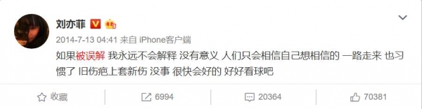 後來劉亦菲乾脆不作回應了,而那些謠言也不攻自破。