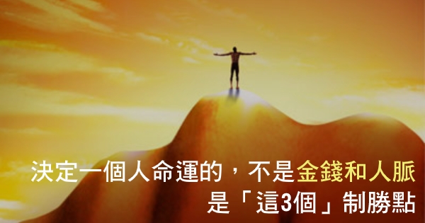 正因為這幾個優勢,成為了他們成功的致勝關鍵。在王陽明看來,人的命運是掌握在自己手中的,而決定一個人命運的,不是金錢和人脈,而是擁有3個致勝點。如果你能做到以上這「3個關鍵」,即使你沒錢沒人脈,改變自己的人生也是遲早的事情。