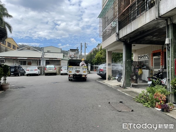 ▲筍農一家14人9人確診,社區環境進行大消毒。