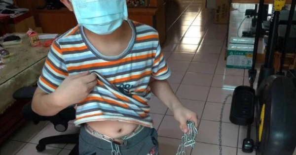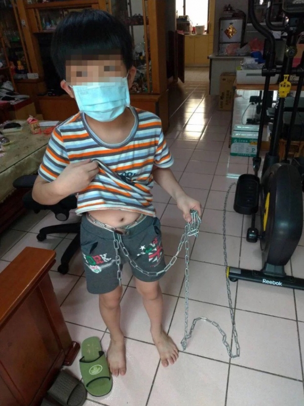 苗栗一名單親父親,因到外縣市工作怕八歲兒子亂跑,竟用五米長的鐵鍊將兒子綁在飛輪上。男童在父親外出後打電話給母親求救。母親獲悉後從桃園趕到苗栗並報警,最後消防人員以油壓剪才讓男童脫困。警方依傷害與妨害自由等罪嫌,將這名父親函送法辦。