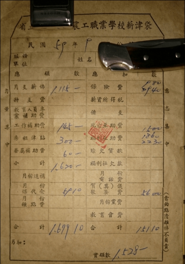 「昨天整理老家時,發現先父以前在某省立農工總務處擔任職員時,