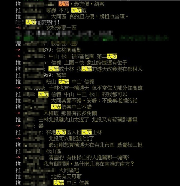 也有網友分析大安區樂勝其他行政區的原因,紛紛指出