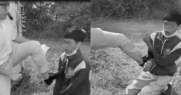 影片顯示,穿制服、戴眼鏡的「栗子頭同學」,坐在牆邊,手持電子菸,右手邊還有一位同學只露出腳,對著一名雙膝跪在草地上男同學訓斥。「栗子頭同學」嗆:「你不是還很行?你不是還很行嗎?」口氣火爆。