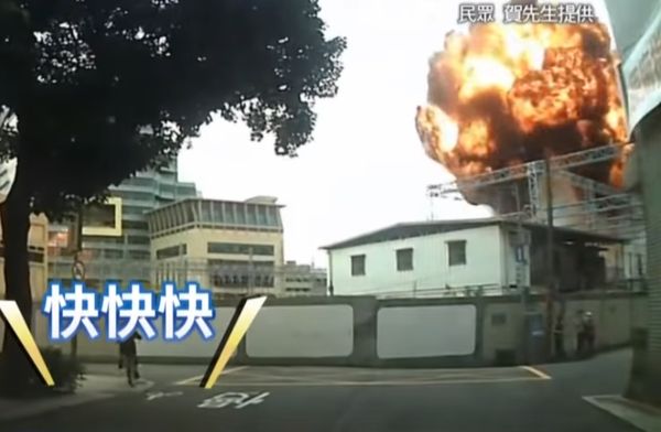 目擊民眾路過嚇得驚叫,民眾行車紀錄器畫面可見現場先有一聲巨響,接著一團火球在天空爆開來。