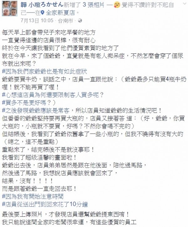 他在台南一間超商看到穿著尿布逛大街的爺爺,