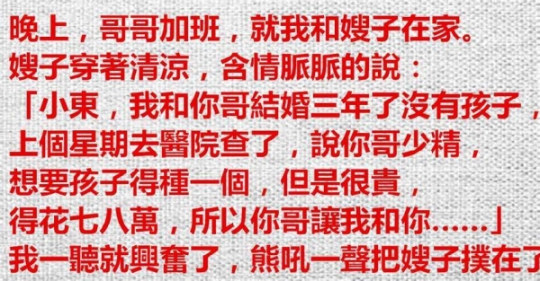 弟弟以為嫂嫂要跟他借精了,