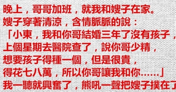 「小東,我和你哥結婚三年了沒有孩子,