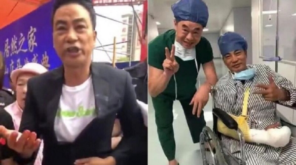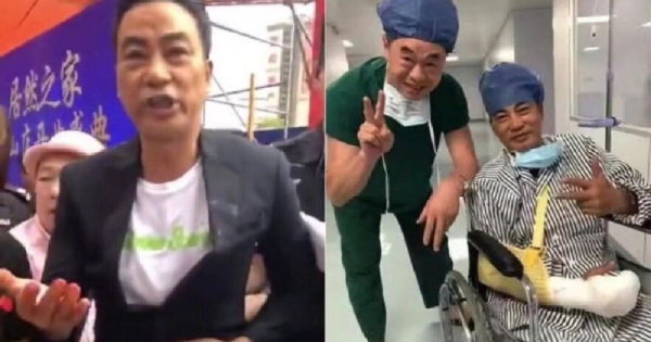 網上也流傳一張任達華在中山動完手術和醫護人員的合照,