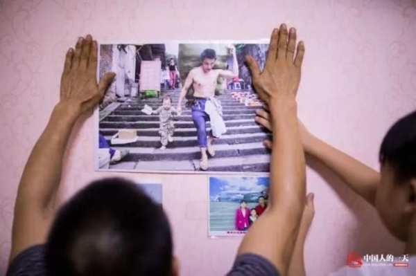 2017年,父子倆一起將照片貼在卧室里,