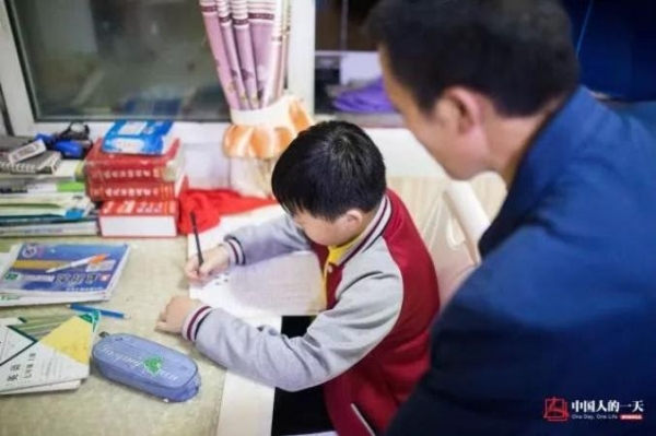 晚上回家,冉俊超在做作業時,