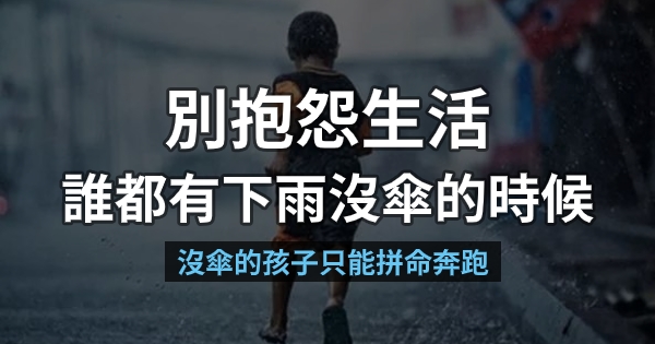 別抱怨生活,誰都有下雨沒傘的時候!沒傘的孩子,只能「拼命」奔跑。